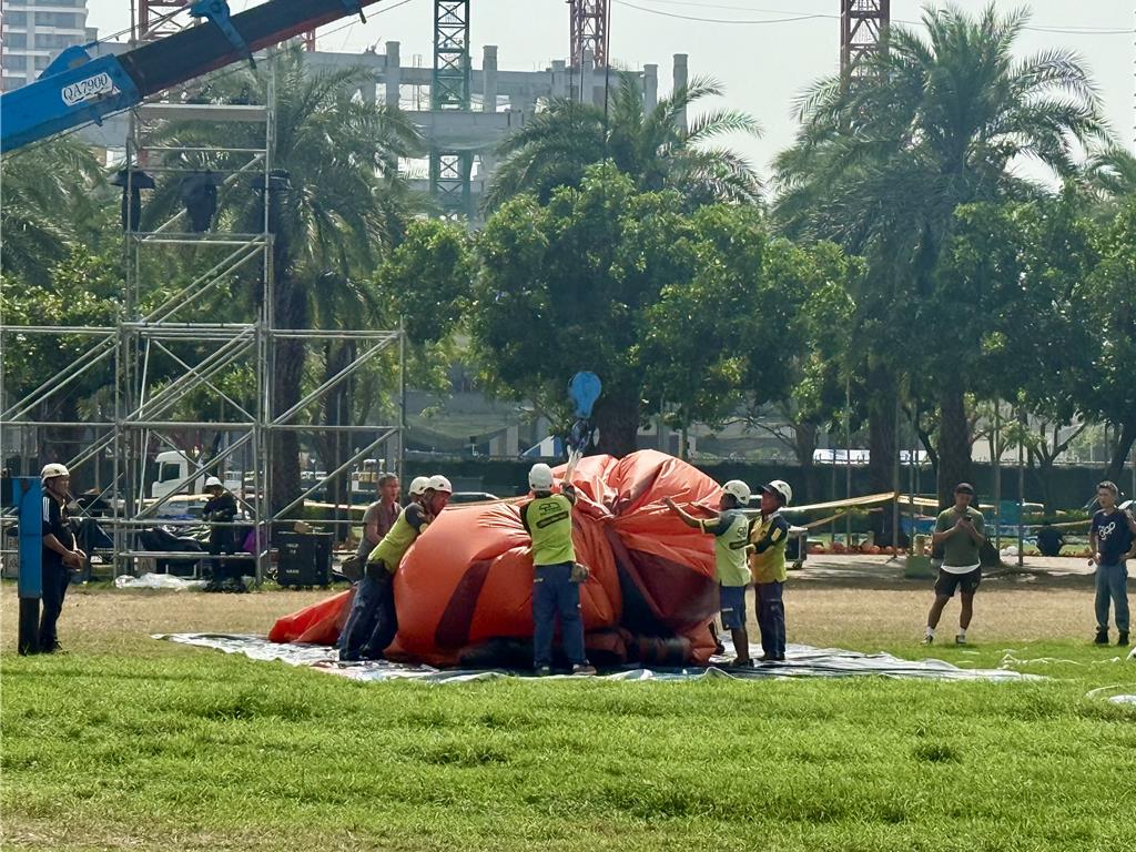 高雄万圣节派对上周六登场,展出超巨型南瓜鬼灯,首日吸引8万人朝圣,却因为突如其来大雨,民众瞬间涌入捷运站险酿踩踏事件引发抱怨,如今台风康妮搅局,南瓜鬼灯仅展出5天4夜就“被迫泄气”,有妈妈特地带著2个孩子来现场看拆除作业,直呼好可惜。