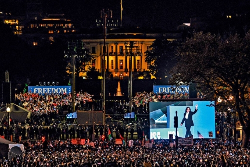 下周二就是投票日,民调显示双方支持度难分高下。哈里斯周二在白宫南侧的“椭圆形草坪公园”(The Ellipse)造势,发表“结辩”演说(closing argument)。造势活动自下午3点开放进场,宪法大道等四周的道路均实施交通管制,已事先报名的民众大排长龙,队伍绕着偌大的椭圆形草坪街区转了好几圈。哈里斯办公室称,参加的群众超过7.5万。