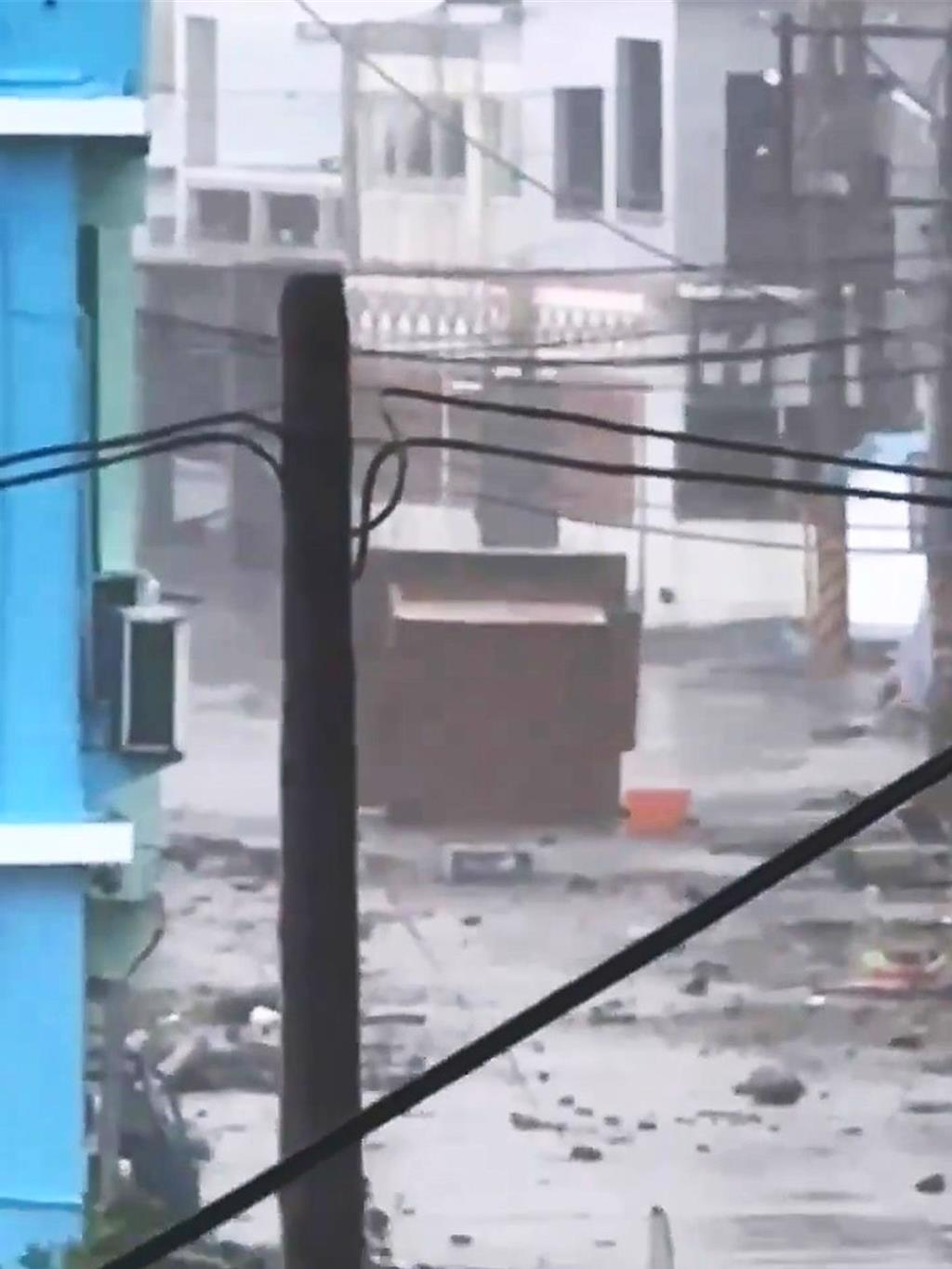 ▲兰屿街道满是被强风吹落的物品。 读者提供