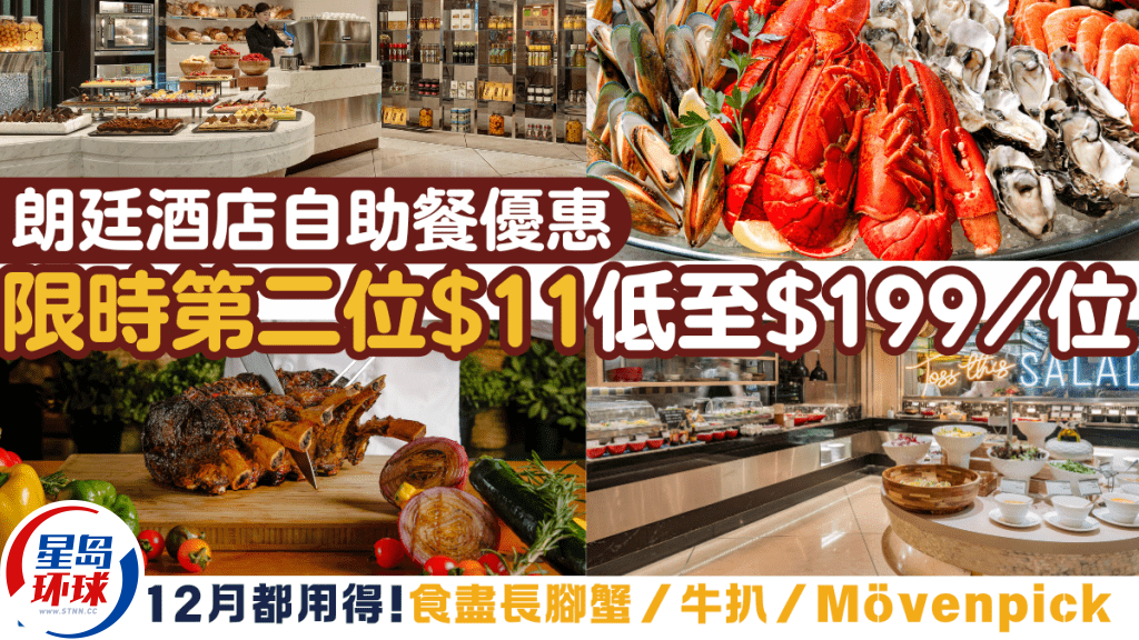 朗廷酒店自助午餐低至$199/位 任食长脚蟹/牛扒/Mövenpick
