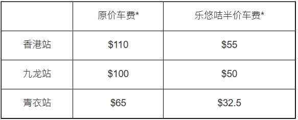 机场快线乐悠咭限时半价优惠往/返机场: