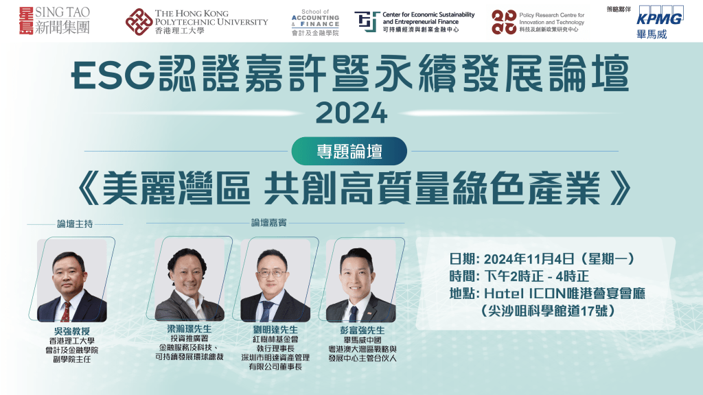 由星岛新闻集团联同香港理工大学举办的“ESG认证计划暨嘉许礼”,自2023年首次举办以来,获多家知名企业参与,成效显著。计划一方面表彰多家在房地产、银行金融及公共事务等领域积极实践ESG之优秀企业;另一方面亦透过业界专业知识和宝贵经验分享,共同探索香港和全球ESG发展的前景和商机。