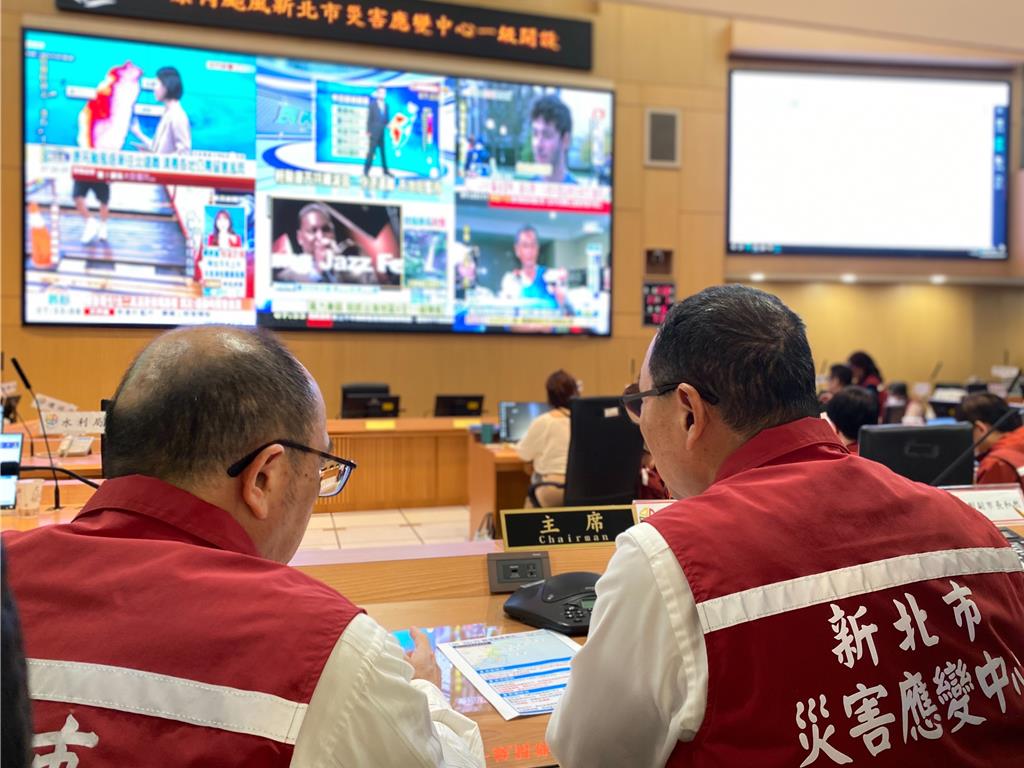 ▲侯友宜关心康妮台风灾情,1日上午赴新北灾害应变中心了解最新情形。