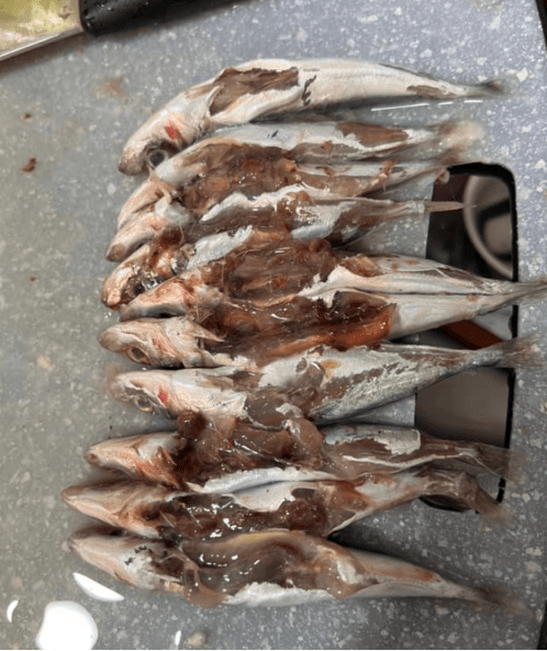 ▲惊见鱿鱼肚内藏劏好小鱼,“发现鱿鱼肚裡被塞了10只劏好的小鱼”