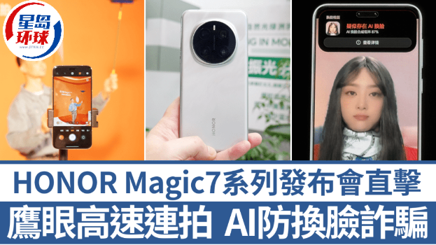 Snapdragon 8 Elite旗舰手机大战赶在“双11”前爆发,新加入战团有HONOR Magic7系列,2款新作拥有强大性能之余,鹰眼相机升级10fps连拍,更可利用AI拍出超清人像,岂只影拍执相,由萤幕护眼、叫外卖、录音翻译均能体验AI无处不在,万一遇上诈骗视像电话,Magic7系到亦会提醒阁下对方疑似借换脸行骗,让AI全方位进驻生活日常。