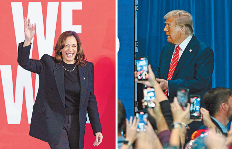 ▲民主党总统候选人哈里斯和共和党总统候选人特朗普,30日同赴北卡州造势,分别于拉票竞选集会上发表演说。 法新社合并图片