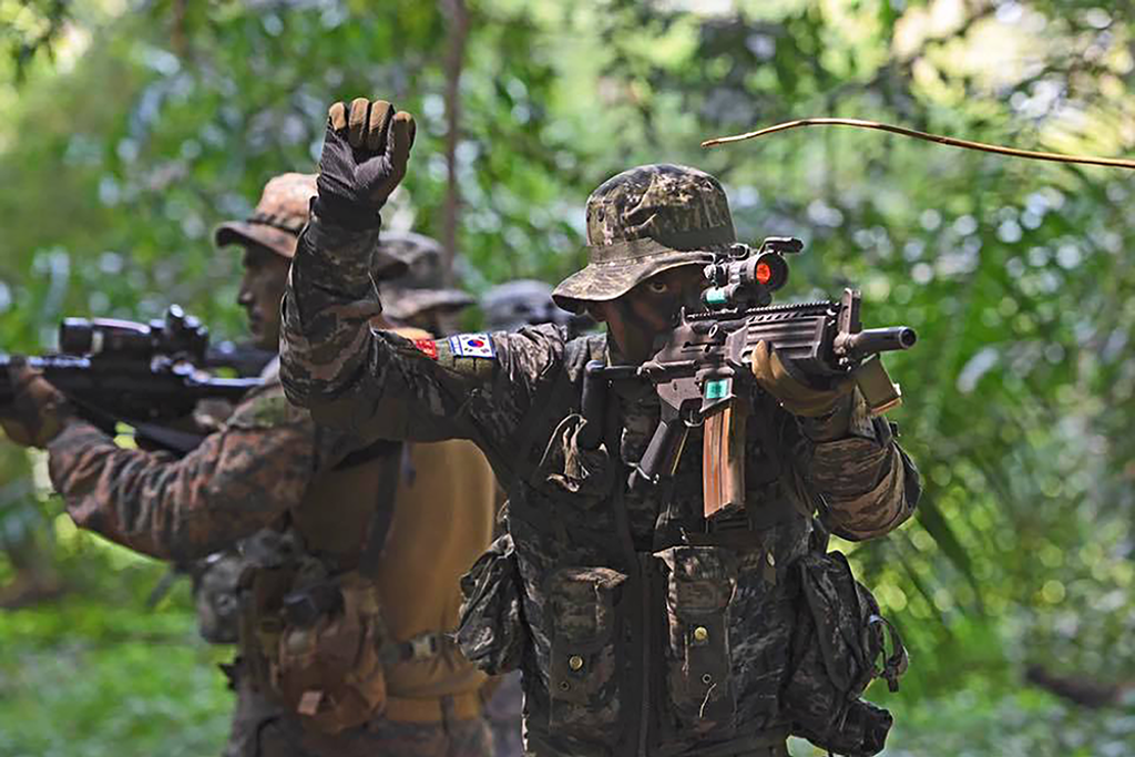 ▲2019年泰国金色眼镜蛇联合眼训,韩国海军特战战团与美国、泰国等多国盟国一起进行联合登陆训练。(韩国国防部/@ROK_MND)