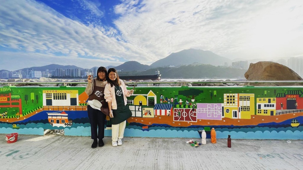 *沿鲤鱼门海傍道步行,穿过马环村范围便来到防波堤,防波堤上的七彩壁画由“鲤鱼门壁画艺术村”的义工绘画,以海鲜为主题,充满鲤鱼门元素。