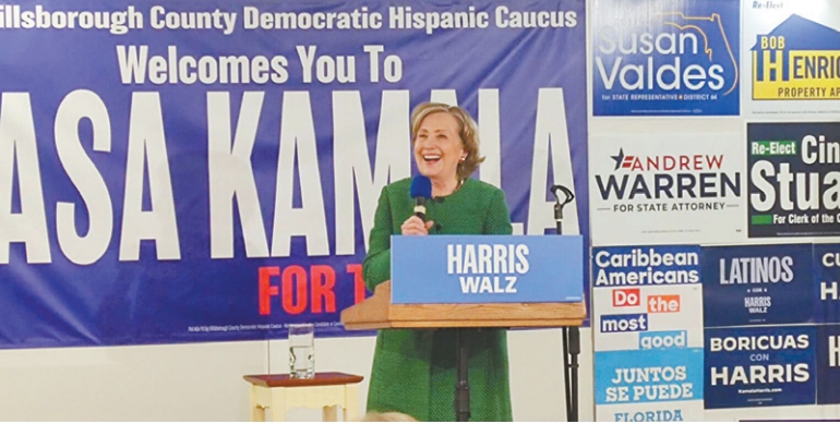 ▲希拉里到佛州坦帕市游说西裔选民,为哈里斯拉票。 佛州凤凰报图片