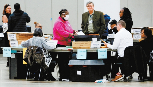▲密歇根州底特律,选举工作人员正在处理选票。 路透社