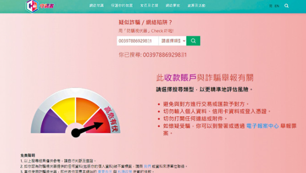 此外,警方指网罪科于今年2月推出升级版“防骗视伏App”,其中“可疑来电警示”可自动辨识诈骗来电,“可疑网站侦测”可自动识别诈骗网站,“公众举报平台”让市民及时举报诈骗陷阱。今年8月,“防骗视伏器”的诈骗举报资料除了融入“转数快”平台,并把覆盖范围延伸至一般网上银行、电子钱包及银行柜枱转帐,在公众转帐时提供更全面的防骗警示。