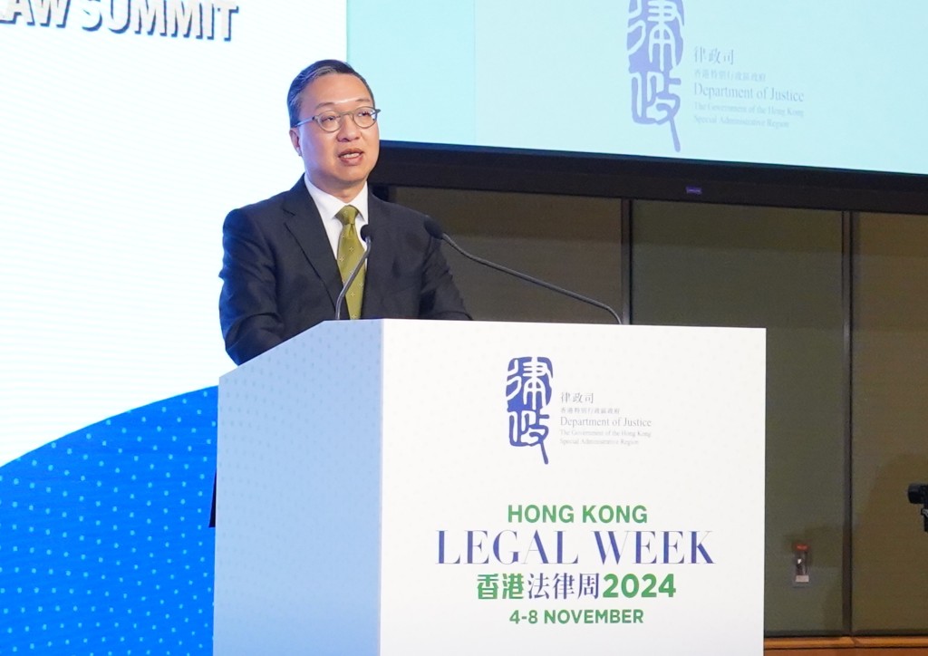 律政司司长林定国致辞时表示,法律周是律政司的年度旗舰活动,今年的主题是“香港普通法制度:中外机遇之世界级跳板”,强调香港作为中国、亚太地区和世界之间门户角色。