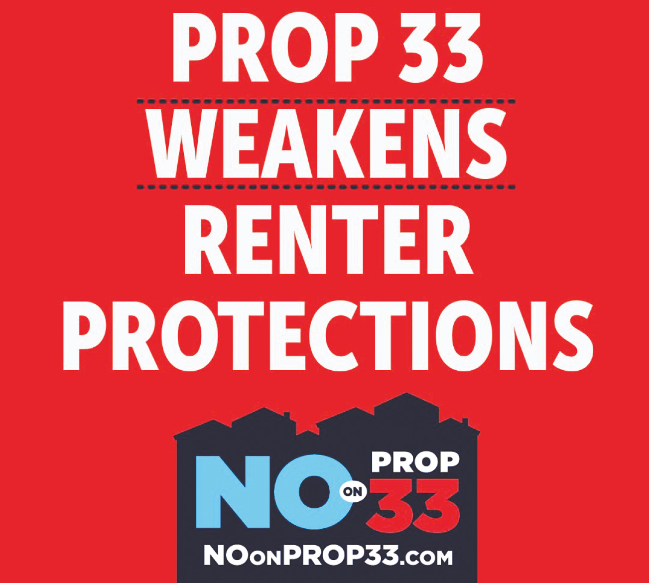 ▲11月大选加州共有10项提案待决,33号提案耗费最多,加州公寓协会大力投资反对提案,图为反对阵营的广告宣传。网站截图