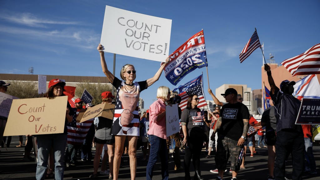 ▲2020年美国大选结束后,特朗普支持者在亚利桑那州凤凰城马里科帕县选举中心外抗议选举早期结果。 路透社资料图