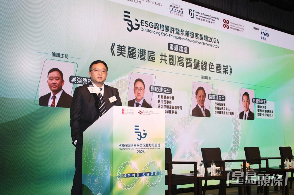 是次星岛新闻集团举办的“ESG 认证嘉许暨永续发展论坛”下设专题论坛《美丽湾区、共创高质量绿色产业》,不同业界人士齐聚一堂,共商如何推动企业ESG实践及绿色产业发展,由香港理工大学会计及金融学院副学院主任吴强主持。