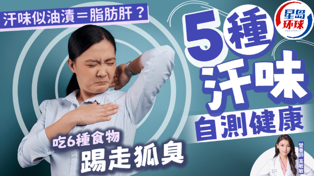 汗味重代表健康出现问题?闻起来像油渍恐患脂肪肝?有营养师指出,汗味原来可自测不同的健康问题,若汗水出现5种异味,可能反映身体某些功能受损,包括影响肝脏、消化系统、胰脏等功能。她又建议,日常可多吃6类食物,有助摆脱狐臭。