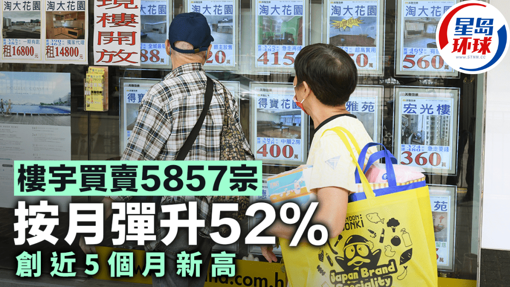 减息后楼市气氛好转,连带交投跟随增加。土地注册处数据显示,上月整体物业买卖录5857宗,按月弹升逾5成,创近5个月新高。业界指利好消息相继涌现,预期11月物业买卖宗数可再创近月新高。