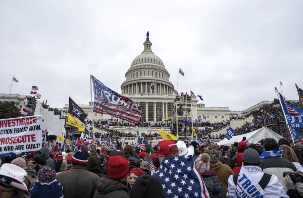 2021年1月6日,当特朗普败选的消息公布后,大批暴力示威者闯入和袭击了美国国会山庄。
