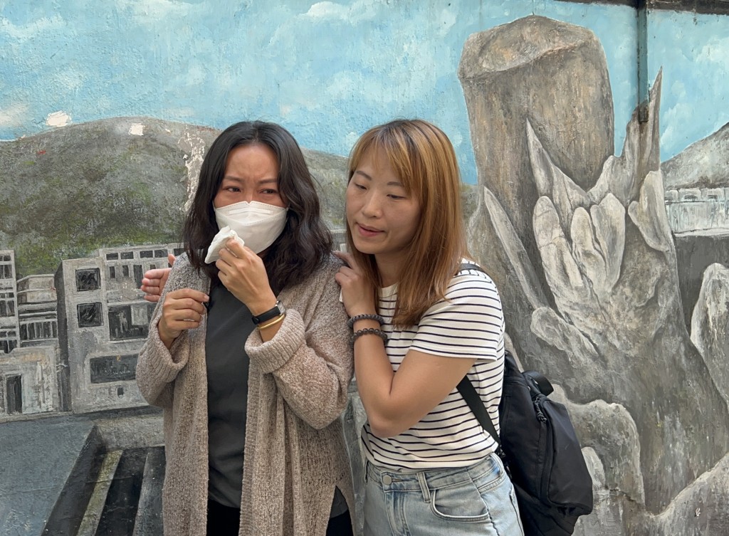 44岁姓林搭棚男工昨日(5日)在土瓜湾马头角道40号的大厦天台工作期间,跌落一楼檐篷惨死。死者是一家经济支柱,生前与太太育有一对年仅8岁和4岁的子女,早前一家四口更获派元朗公屋。原本一家美满,讵料一场意外拆散大好家庭,遗下孤儿寡妇徬徨无依。今日(6日)早上,死者家属到葵涌殓房认尸,之后亦返回意外现场路祭,其间遗孀伤心欲绝,哭成泪人。