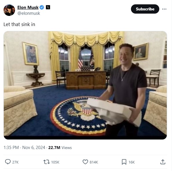 此外,马斯克在社交媒体X平台亦讨论到委员会的未来,重申支持特朗普,并表示特朗普的胜利将反映出选民渴望变革,认为美国正发生翻天覆地的变化。