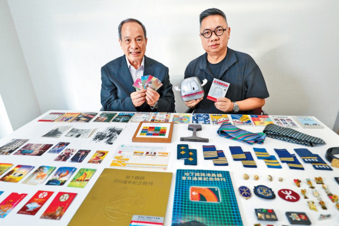 ▲香港著名历史爱好者郑宝鸿(左)和设计师兼文物收藏家胡兆昌(右)分享他们多年来的地铁收藏品。
