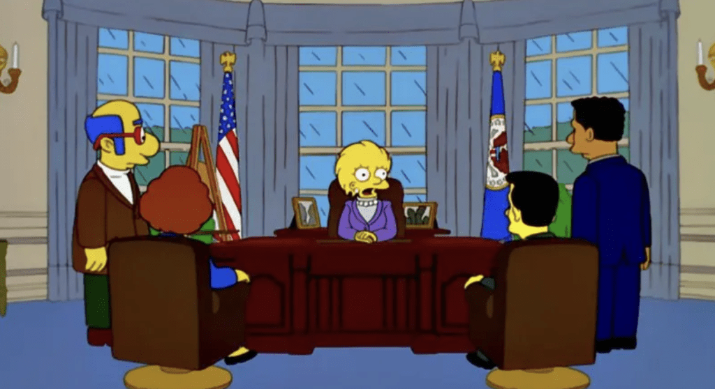 ▲《辛普森一家》其中一集节目中,丽莎·辛普森成为美国第一位女总统