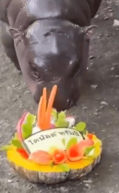 养在芭堤雅绿山国家动物园的弹跳猪,月前以身型圆滚滚的萌样红爆全球,园方有见及此,于今月4日即美国大选投票日前夕大玩噱头,在园内捧出两盘分别写上特朗普和哈里斯名字的水果拼盘,测试弹跳猪的预测能力,而4个月大的弹跳猪选择了特朗普,走到刻有他名字的水果盘前,大口大口地吃起来。