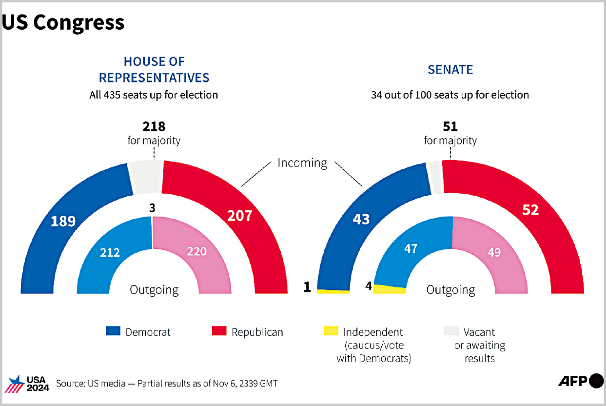 ▲目前,共和党已经重新取得参议院的控制权,并在众议院改选中稍为领先。 法新社