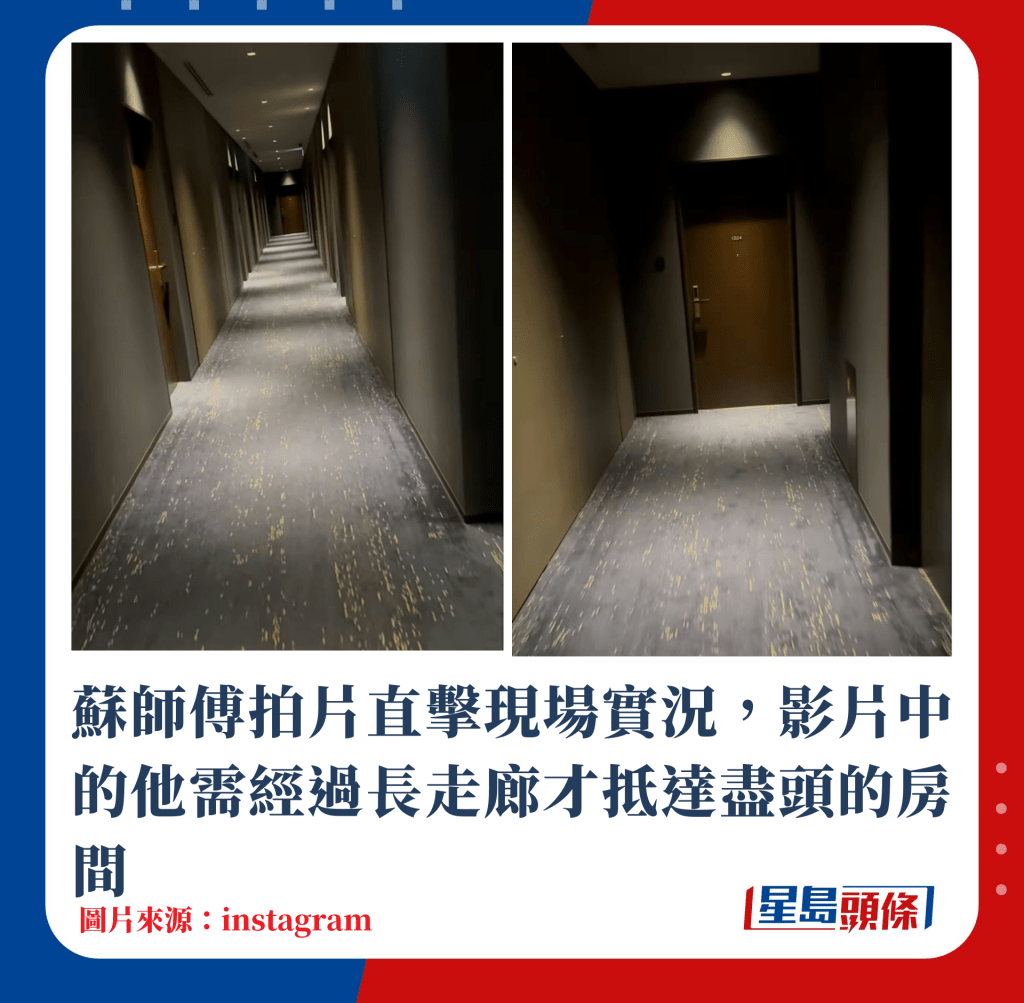 旅行预订酒店房间时未必能指定房号,一般酒店分派房间从邻近升降机开始往内分配,越接近走廊尽头,人气越少,故此有说酒店尾房聚集阴气,大多旅客都不太希望住进尾房。不过,如果酒店房源紧张或预订套房的话,便大机会分派尾房。玄学家苏民峰近日到东京旅游时入住一间酒店的豪华套房,惟这次他被安排到尾房,他更拍片直击酒店超长阴森走廊,令人不寒而慄。