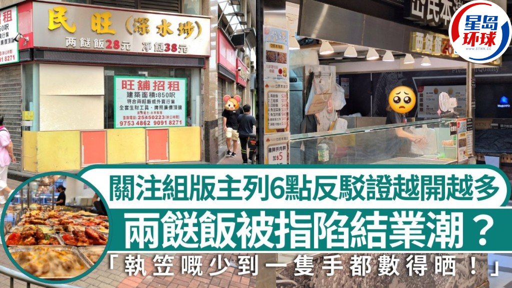 饮食业市道低迷,惟两餸饭持续扩张,不少人笑言香港已成“两餸饭之都”。不过,最近有消息指两餸饭店陷入“结业潮”危机,接连有多间两餸饭店“做唔住”,引起网民热议,就连“香港两餸饭关注组”版主Andrew亦出面回应,逐点反驳两餸饭店结业潮传闻,更力证越开越多:“执笠嘅少到一隻手都数得晒!”
