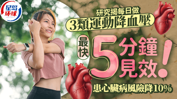 做运动有助降血压,哪种运动最有效?外国一项涉及逾1.4万人的最新研究发现,有3类运动只需每日做至少5分钟,即可有助降血压,患心脏病风险更可降10%。