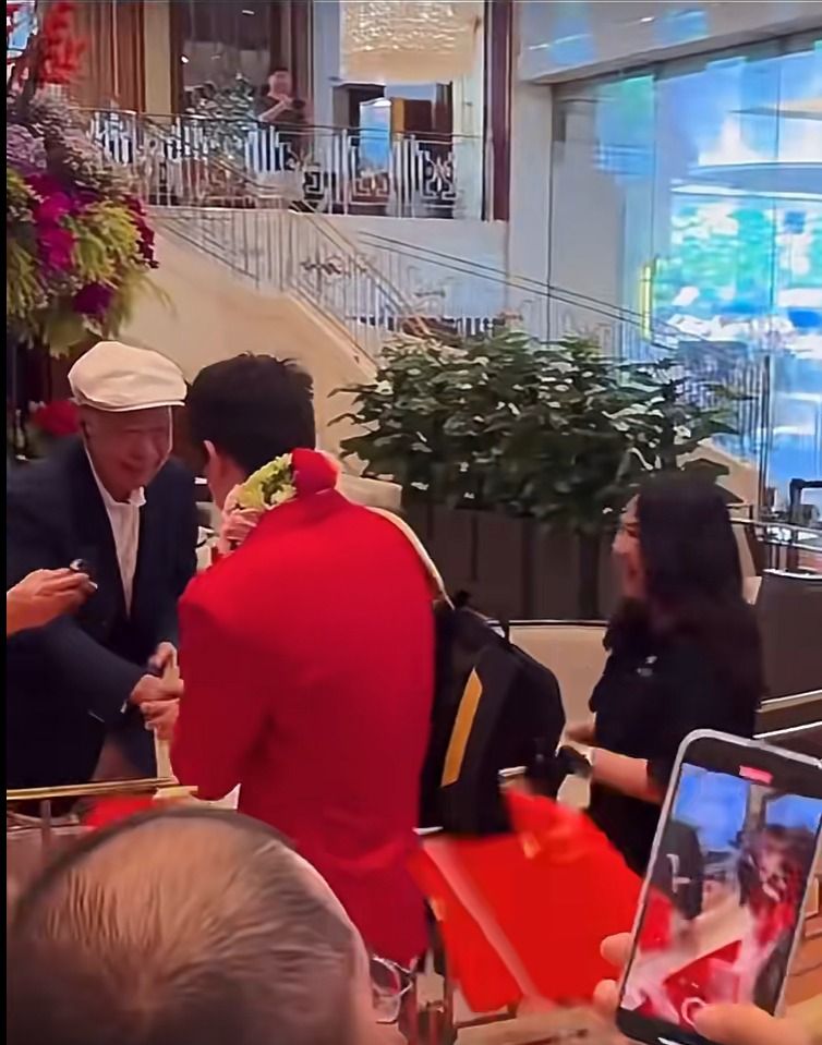 ▲吕志和最后公开露面,是今年8月接待国家队,图为他与潘展乐握手。