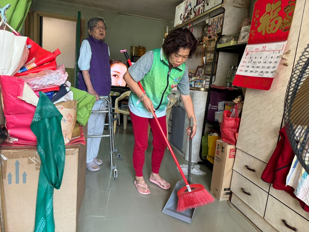 此外,Ling者上门家访时,还会替独居长者清理家居:“有些身体不太好的长者,根本不会执屋,曾经有一个个案,间屋乱七八糟,每个角落都堆满杂物,一不小心就会绊脚跌倒。 我知道后立即联络其他义工,一起帮手清理没有用的杂物,这样住也住得舒服安全一点。”每逢年尾,特别多独居长者需要协助清理家居:“执好间屋过年嘛,所以年尾会比较忙碌。”Ling姐说,她只能帮手做些简单的清洁工作:“如果要爬高爬低的,我就做不了,始终自己都不年轻了。”