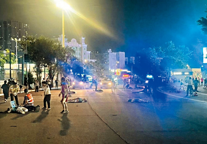 据网上流传的影片显示,数十名伤者倒地,部分人穿上划一的蓝色制服。现场有人不停呼叫救命,也有人痛哭尖叫,气氛紧张。多辆救护车抵达现场,医护人员忙于协助伤者。有视频拍摄者称,跑步经过时,亲睹一辆越野车高速驶过,无差别朝正在场馆外围夜跑及散步的民众冲撞。另有视频拍摄犹有余悸的不停说:“恐怖,恐怖”。另一视频显示,警方截停一辆越野车,警员擎枪包围车辆。