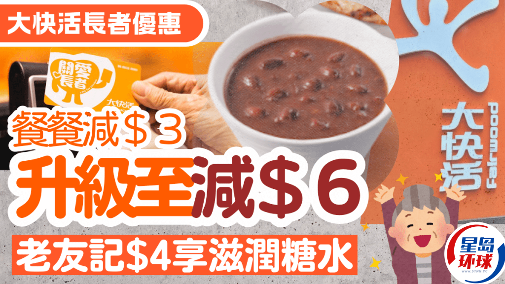 大快活长者优惠加码! 持“快活关爱长者卡”即享每单减$6