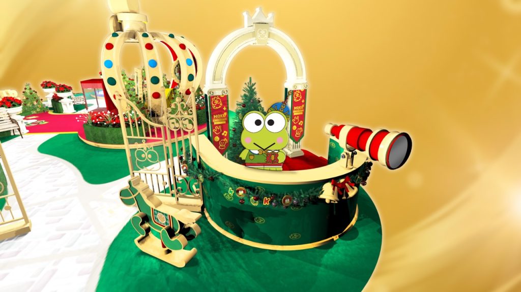Sanrio角色KEROPPI以王子造型登陆旺角MOKO,与各位粉丝一齐过梦幻圣诞,场内设有5大打卡场景以及3大互动游乐体验,其中5米高KEROPPI的5米高皇冠寝室充满华丽风格,KEROPPI化身高贵王子与大家打卡! 另外,庭园入口设有小朋友喜欢的摇摇木马,KEROPPI变身骑士于暸望台与大家合照。 大家不能错过必玩的宝物荷花池互动装置,市民可以踏上设于池塘位置的互动电子屏幕,寻找神秘礼物! KEROPPI更会藏身于商场的不同角落,商场2楼至5楼会出现不同造型的贴纸,扫瞄旁边的二维码可获得限定电子圣诞卡一张。