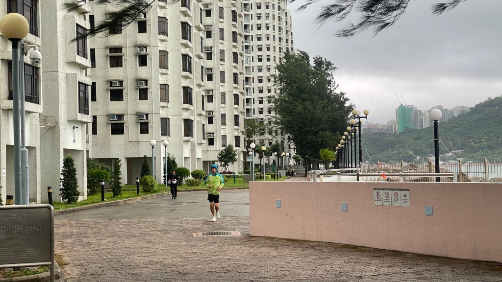 今年70岁的陈先生因8号风球得以延迟上班,他表示习惯到杏花邨晨运,不担心大浪,“现在都没有浪,平日打风浪很大,打到上岸。”