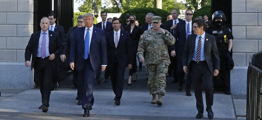 ▲米利(右二)曾在特朗普第一任期内出任参谋长联席会议主席。美联社