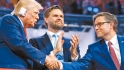 ▲特朗普13日在华府参加众议院共和党党团会议,并与众议院议长强生握手。美联社