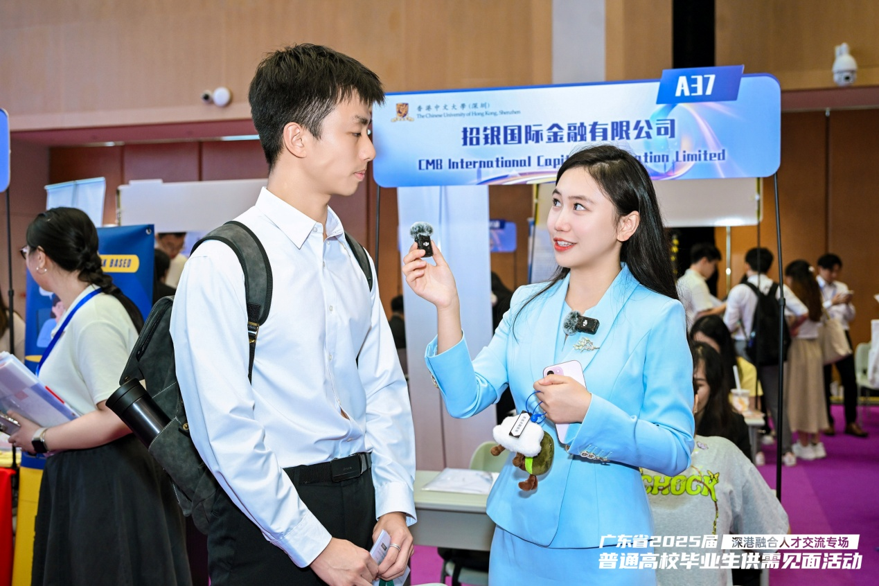 广东省2025届深港融合人才交流专场暨香港香港“高才通”招聘巡礼广东站11月15日在香港中文大学(深圳)礼文堂举行。星岛新闻集团旗下知名招聘平台JobMarket与香港劳工及福利局合作,引入59家香港企业、近千个职位,吸引3000多位香港及内地名校学生参与活动。