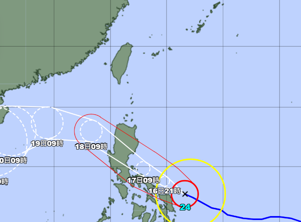 ▲万宜升级强烈台风,预计下周进入南海后,为台湾地区带来降雨。(翻摄日本气象厅)