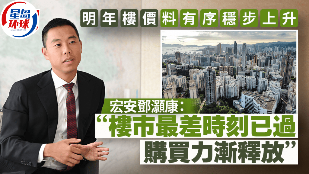 近期多项利好因素涌现,激活楼市气氛。宏安行政总裁邓灏康接受《星岛》专访时表示,相信楼市最差时刻已过去,随着减息周期展开,购买力会逐渐释放,而且在众多投资类别中,住宅是有稳定投资回报,相信明年全年楼价将有序地稳定上升。