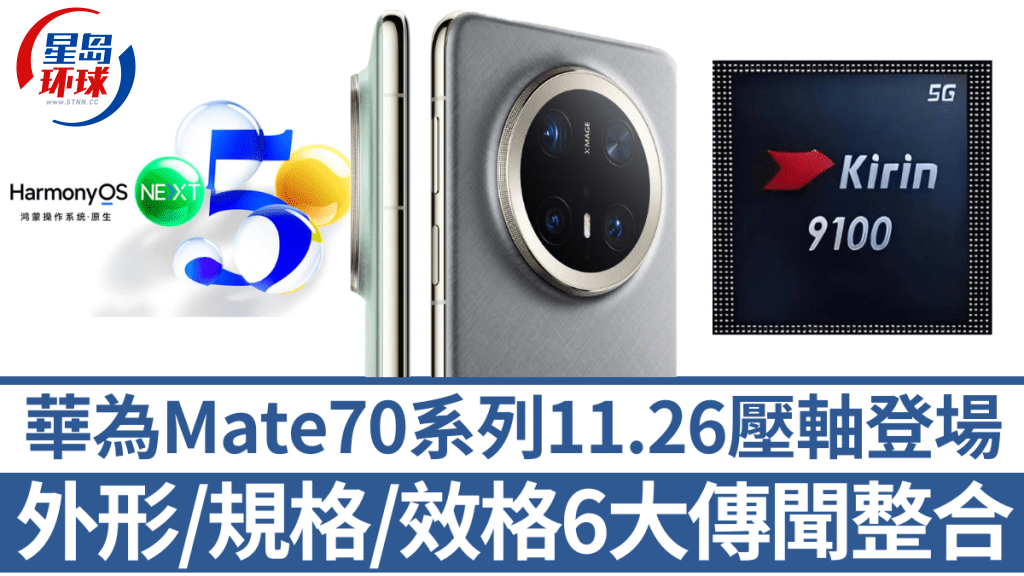 一如本月初华为常务董事余承东预告11月见,官方今日终于宣布11月26日假深圳举行发布会,届时将带来备受期待的Mate70系列,除了预载纯血鸿蒙系统带来全新操作及应用体验,据悉亦会配备全新Kirin 9100处理器,现为大家整理有关Mate70系列的外形、规格及功能传闻,在这部压轴大作正式亮相前先做点功课。