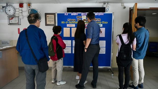 小一入学自行分配学位结果今日(18日)出炉,有家长今早到位于九龙塘的传统名校喇沙小学查看结果。近年适龄学童人数减少,有家长认为,传统名校的入学竞争依然激烈,“本身喇沙、拔萃这些(名校)都是比较多人争(学位)。”
