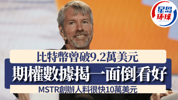 比特币持续创新高,一度突破92,000美元,最新报91,690美元,日内升约1.5%,以过去一年计更累升150%,因此部份投资者忧虑现价入场会否“高追”?不过,加密货币衍生品交易所Deribit首席执行官Luuk Strijers指出,期权市场数据显示交易员仍压倒性地看涨比特币。此外,MicroStrategy(MSTR)联合创办人Michael Saylor更预测,比特币价格很快达10万美元大关。