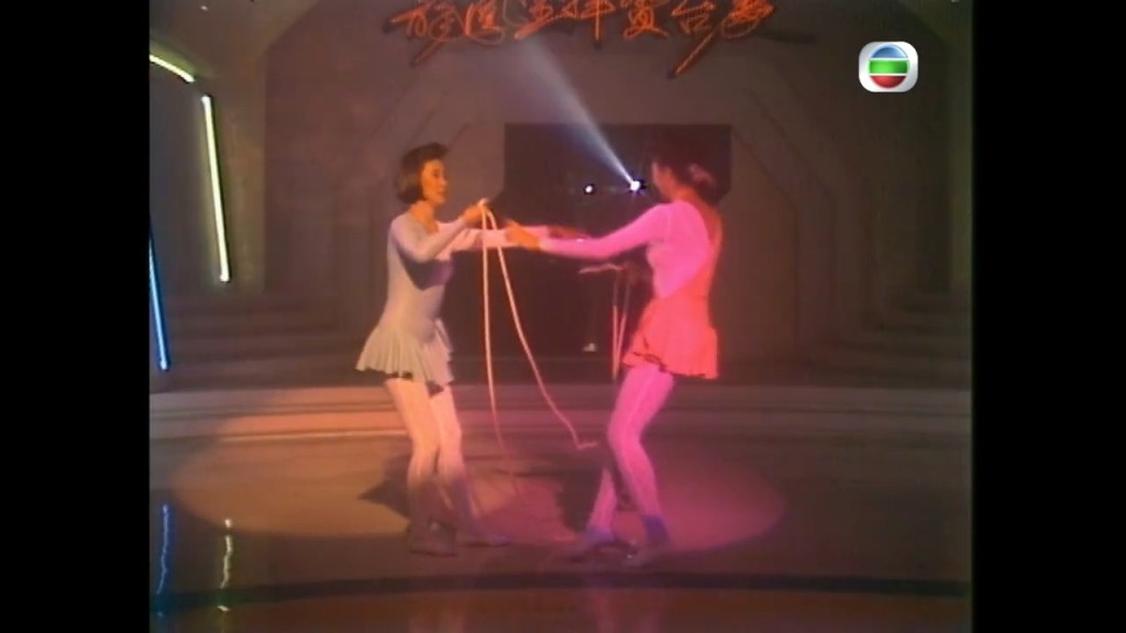 ▲汪明荃穿上类似芭蕾舞衣的服饰,大跳丝带舞。