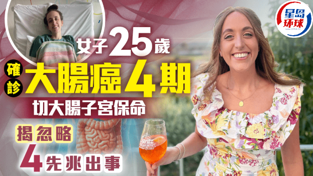 大肠癌为全球第2大致命癌症,并有年轻化趋势。英国一名女子两年前、刚满25岁时,被诊断出大肠癌第4期,更扩散至多个器官,须切除子宫及部分大肠保命。她表示,确诊前忽略4大征兆导致延医。最近她拍片分享自身经历,呼吁大众多加注意。