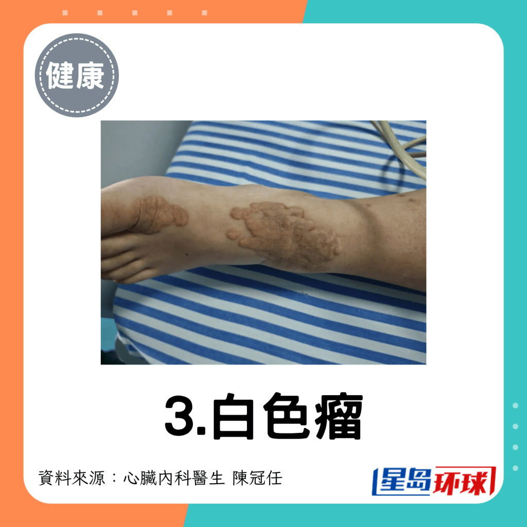 注意事项:若戳破白色瘤,会有油脂(脂肪)流出。如痛风关节的坚硬结晶物不同,白色瘤质地偏软,有助分辨症状属尿酸过高或血脂过高。