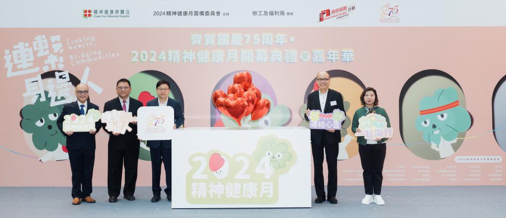 ▲精神健康月2024以“连系身边人”为主题,劳工及福利局局长孙玉菡(左三)出席开幕礼。
