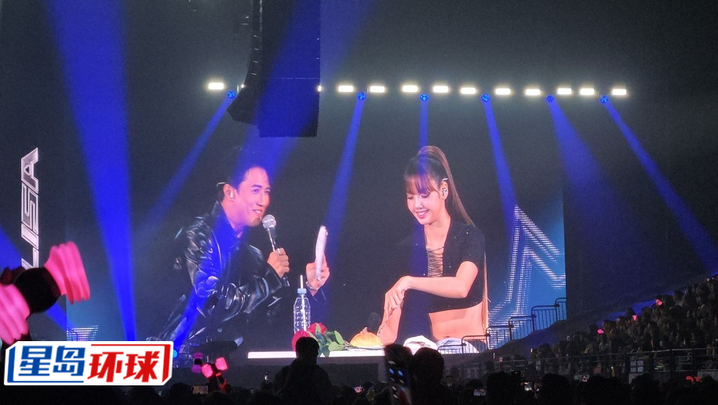 虽然Lisa状态不佳,但她仍落力演出,晚上8时45分,黑色造型打扮大晒纤腰、长腿的她,在粉丝的尖叫声下登场,劲歌热舞《LALISA》拉起序幕。Lisa以英文表示对上一次来港是跟BLACKPINK队友来开演唱会,又直言:“我想念我的女孩们。”她又指上次来港玩得很开心,所以一直很期待再访港。Lisa又指香港落雨,一度担心粉丝来不了,很感谢粉丝到场支持。